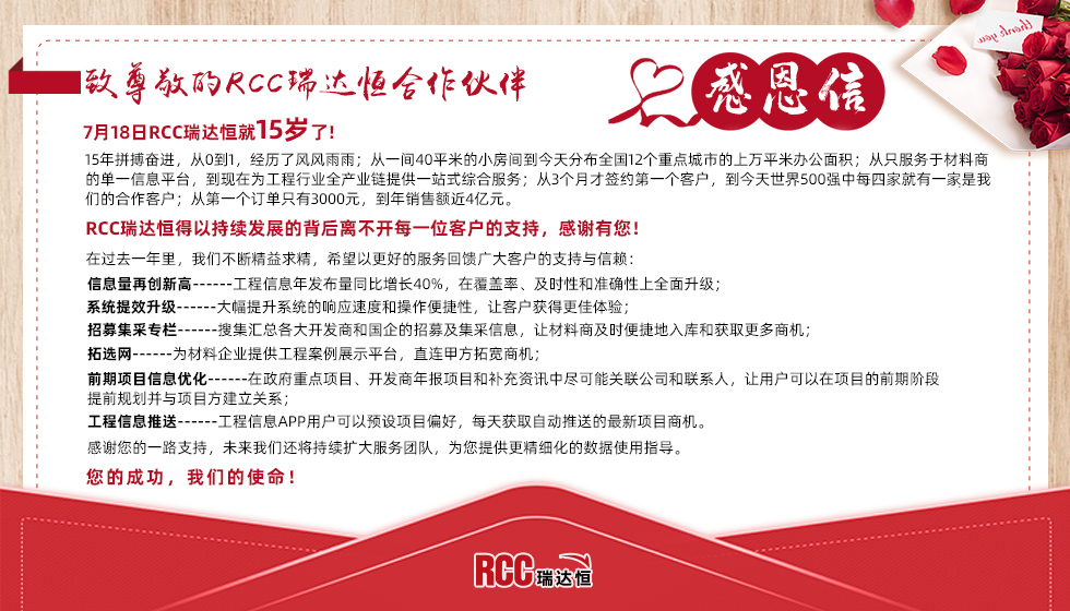7月18日,RCC瑞達(dá)恒15歲了!